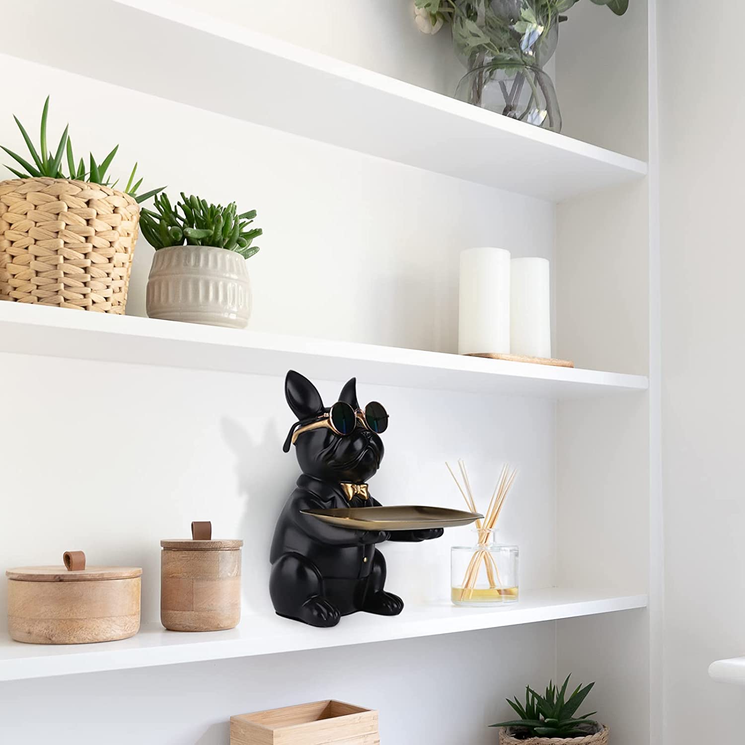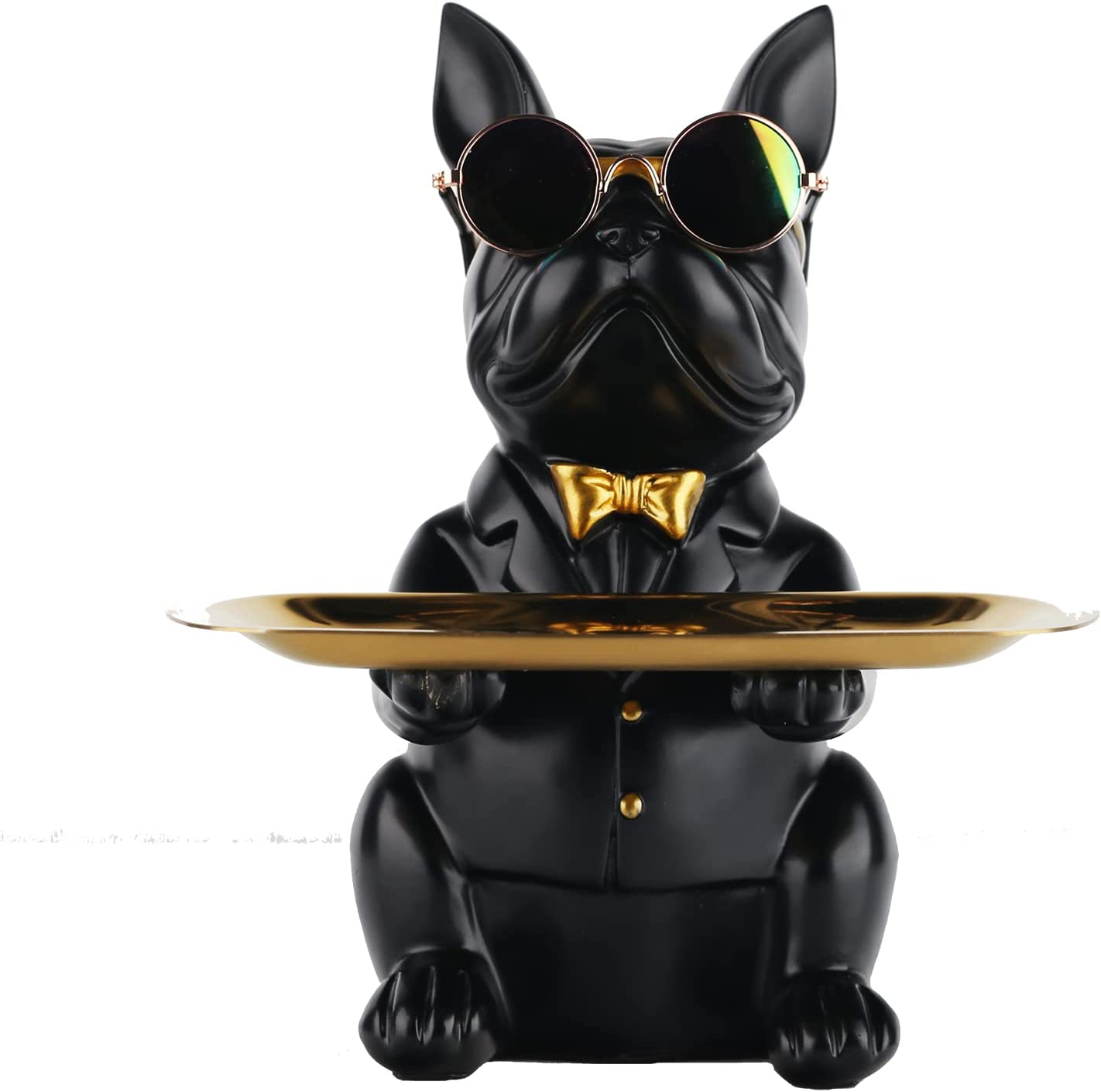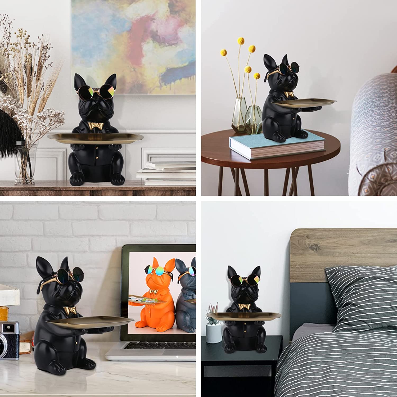 Scultura in resina con Bulldog Francese multifunzionale: vassoio, porta oggetti,salvadenaio